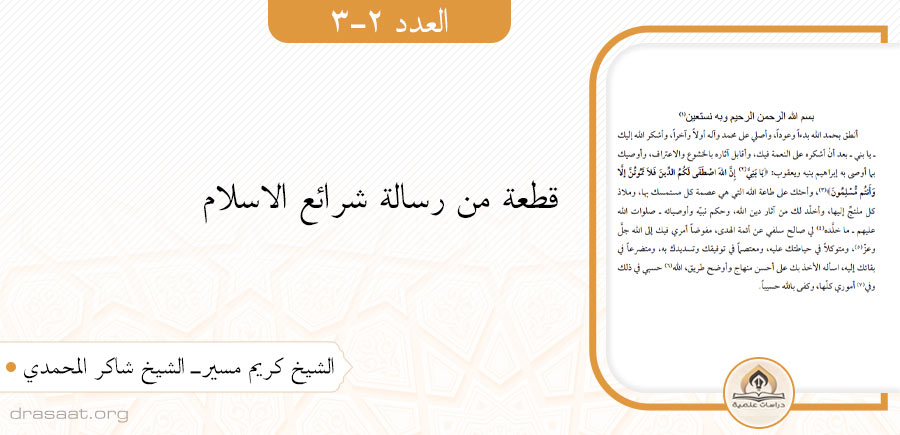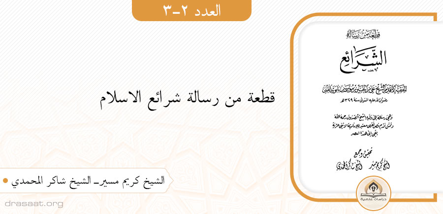 (متن الرسالة) قطعة من رسالة شرائع الاسلام (لابن بابويه القمي رحمه الله)