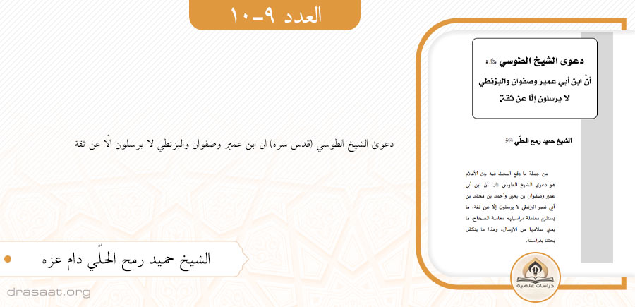 • دعوى الشيخ الطوسي (قدس سره) ان ابن عمير وصفوان والبزنطي لا يرسلون الّا عن ثقة